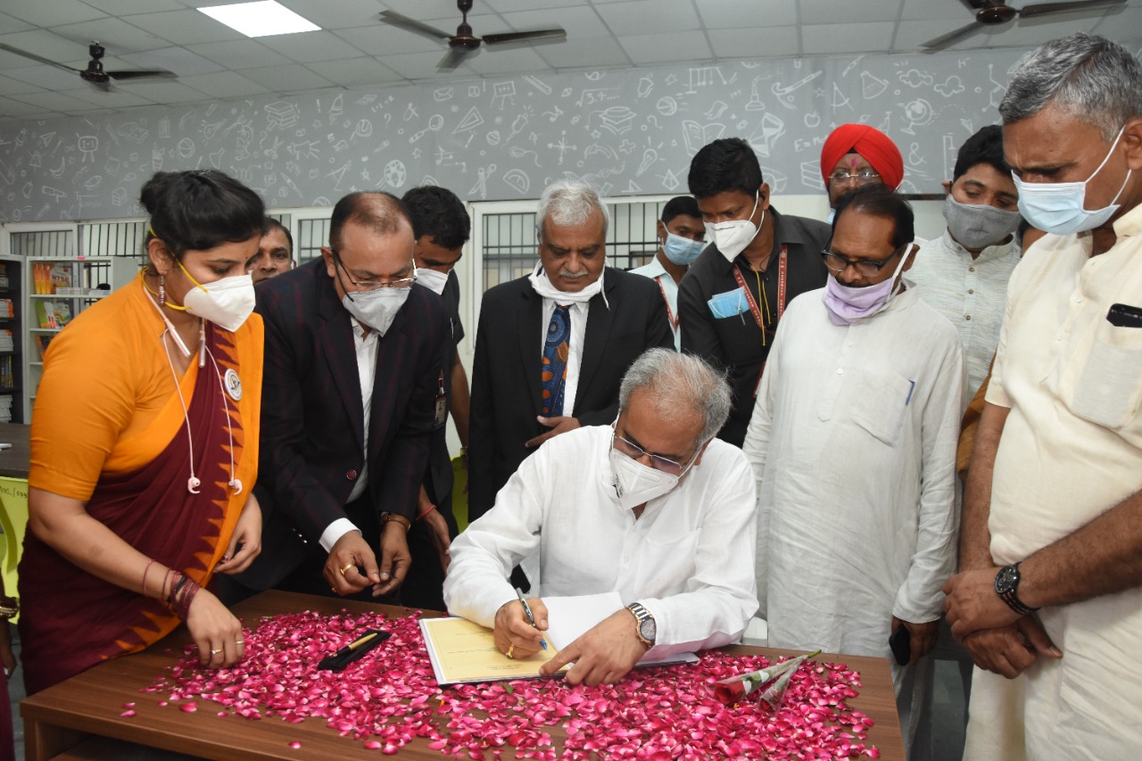 On the occasion of Teacher’s Day, Chief Minister  Baghel today addressed the R.D. of the capital Raipur. After inaugurating Tiwari Swami Atmanand Government Excellent English Medium School Amapara in its new form, he observed the works displayed by the innovative teachers in the ‘Shiksha Madai’ exhibition organized there. He took information from the students and teachers about the excellent facilities developed in the school and after observing the school and wrote in the autograph book of the school that earlier also R.D. Tiwari has come to school. But now this school has completely changed. The teachers made many efforts to ensure that the education of the children is not interrupted even during the Corona period, which was appreciated at the national and international level. Today, on the occasion of Teacher’s Day, congratulations to the teachers of the school. Swami Atmanand met the children of English medium school. Their self-confidence is built upon seeing.