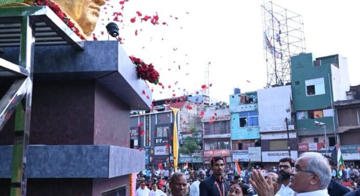Raipur: The Chief Minister himself. Wreathed on the statue of Chandulal Chandrakar