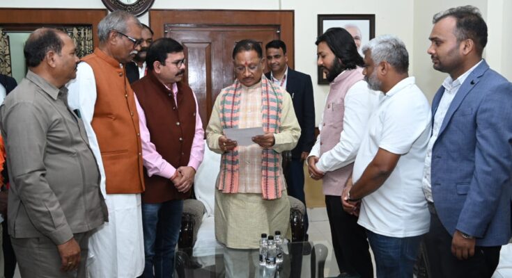 The delegation of Satnami Utthan and Jagriti Samiti Raipur led by MLA Guru Khushwant Saheb met Chief Minister Shri Vishnu Dev Sai today at the State Guest House Pahuna courtesy. The delegation invited the Chief Minister to attend the state level youth-girl introduction conference of Satnami Samaj to be held on January 7 in the capital Raipur as the chief guest. The Chief Minister expressed his gratitude to the members of Satnami Utthan and Jagriti Samiti for the invitation and extended best wishes for the successful organization of the program. On this occasion, President of Satnami Utthan and Jagriti Samiti Raipur, Mr. Jai Bahadur Banjare, Mr. Sarju Prasad, Mr. Dinesh Khunte, Mr. Prithviraj Baghel and many others were present.