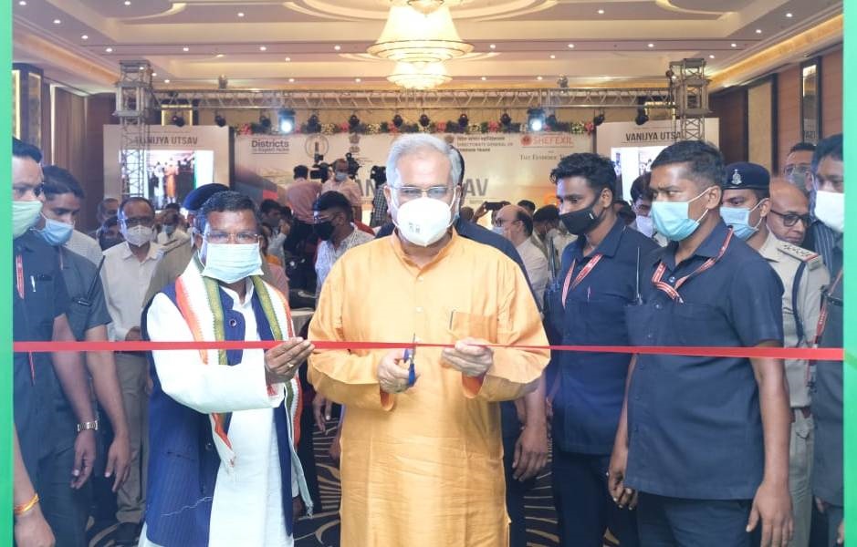 Raipur, 21 September 2021. While inaugurating the two-day commerce festival in the capital Raipur here today, Chief Minister Shri Bhupesh Baghel said that natural resources and all minerals are available in abundance in Chhattisgarh. There is immense potential for industry and trade here. The state of Chhattisgarh can play an important role in the country’s exports. Being a landlocked state, the facility of air cargo is necessary to send the product out here. We are constantly requesting the Government of India for the facility of air cargo, so that it is easy to export the product here. The Chief Minister said that there is no shortage of water, forest and land in Chhattisgarh. Apart from being a rice bowl, more than 74 percent of the country’s forest produce is stored in Chhattisgarh. There are abundance of medicinal plants here. Industry through their processing and valuation, Trade and exports will get a boost. This two-day program of commerce festival is being organized under the joint aegis of Directorate General of Foreign Trade, Government of India and Chhattisgarh Department of Commerce and Industry under Azadi Ka Amrit Mahotsav. Shephixel Kolkata, DGFT, CSIDC Customs etc. related to Ministry of Commerce are participating in this event. The inauguration program was presided over by Chhattisgarh’s Commerce and Industry Minister, Mr. Kawasi Lakhma.