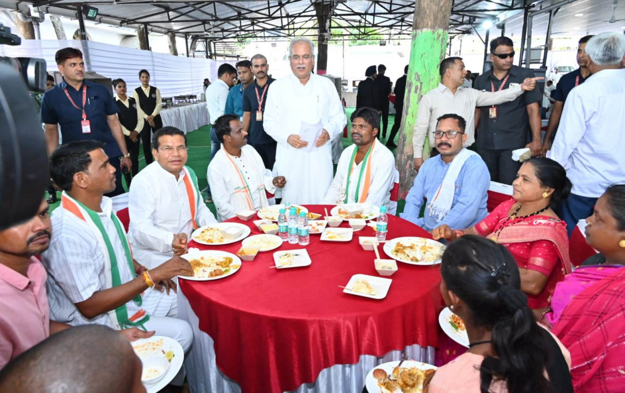 During the meeting, the villagers at whose house the Chief Minister had food in Bastar division, were given a feast at his residence today.