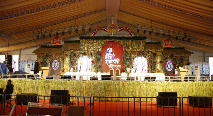 The main stage of the National Ramayana Festival decorated on the theme of Aranya Kand of Ramayana