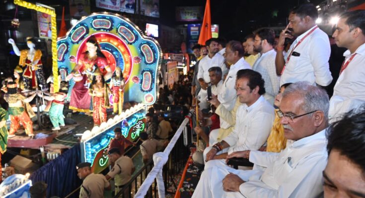 Every year on Ganeshotsav, the citizens of the capital wait for the beautiful tableaux of Lord Ganesha. It has a grand tradition in Raipur and the entire city stays awake at night waiting for the beautiful pastimes in the form of tableaus of Lord Ganesha. Chief Minister Shri Bhupesh Baghel along with other citizens of Raipur enjoyed the devotion from the beautiful tableaux and worshiped Lord Ganesha.