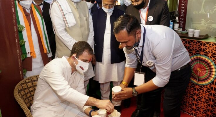 Raipur, 03 February 2022. Member of Parliament, Shri Rahul Gandhi, during his stay in Chhattisgarh, today tasted coffee at the Bastar Coffee stall set up in the Science College, capital Raipur. Chief Minister Shri Bhupesh Baghel was also with him on this occasion. Shri Rahul Gandhi praised the innovation and taste of coffee production taking place in Bastar. He also suggested to Chief Minister Mr. Baghel to sign MoU with International Coffee Brands (big companies).