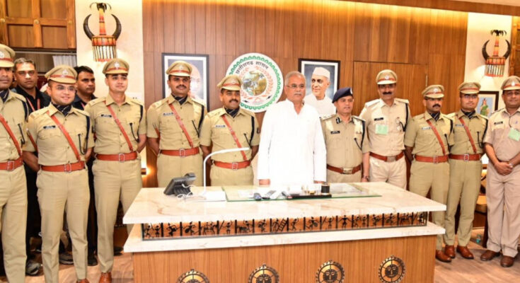 A delegation of trainer officers of Indian Police Services, led by Director of Netaji Subhash Chandra Bose State Police Academy Chandkhuri, paid courtesy call on Chief Minister Mr Bhupesh Baghel at his office in the Vidhan Sabha premise. Chief Minister Mr Bhupesh Baghel congratulated the trainee Officers and advised them to stay alert and updated about the current challenges, crimes and cyber crimes, and motivated them to perform their duties as police officers with diligence and dedication. On the occasion, Mr. Akash Kumar Shukla, Mr. Aman Raman Kumar Jha, Mr. Ravindra Kumar Meena, Mr. Rohit Kumar Jha, Mr. Ravindra Kumar Meena, Mr. Rohit Kumar Shah, and Mr. Udit Pushkar from IPS Batch 2021, and Mr. Chirag Jain and Mr. Umesh Prakash Gupta of IPS Batch 2020 were also present.