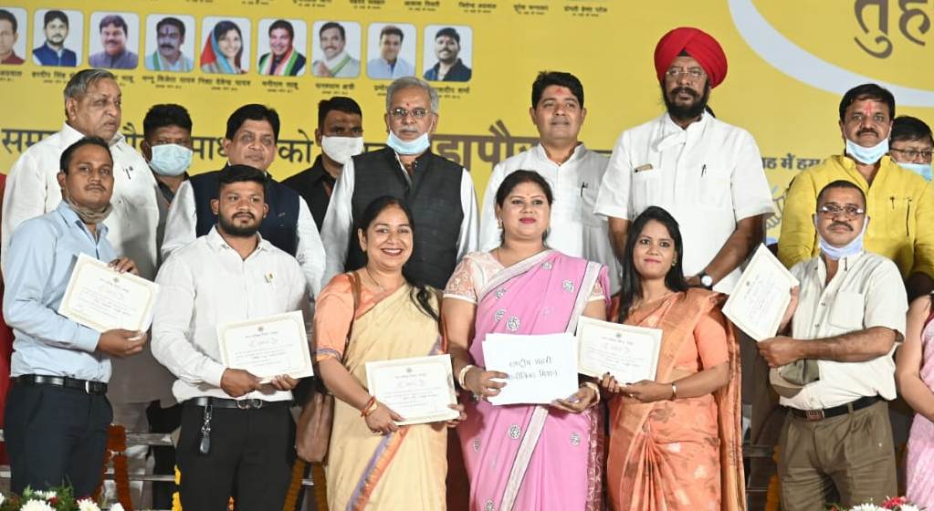 Addressing the program, Chief Minister Mr. Baghel said that special emphasis is being given by the state government to expand public facilities in the urban bodies of the state. He said that in the era of Corona crisis many problems of citizens were pending in the urban bodies. For this quick resolution, the said special program was organized by the Raipur Municipal Corporation in an innovative initiative. This program has been very helpful in removing their problems. Under this, more than 44 thousand benefits have been provided under the campaign conducted in all the 70 wards of the Municipal Corporation Raipur. Of these, about 7 thousand citizens have been issued ration cards and 7 thousand workers registration cards. Similarly, more than 14 thousand people of Municipal Corporation Raipur have been given Dr. The card of Khoobchand Baghel Health Insurance Scheme has been distributed and benefited. He said that under this program, along with improvements in public services in the camp organized in wards, relief materials like ration card, Aadhaar card, labor registration card, business loan, housing, Dr. Khubchand Baghel health assistance scheme etc. were also distributed which The program has been a significant achievement. He also honored government employees and voluntary organizations for their outstanding contributions to the camp on the occasion.