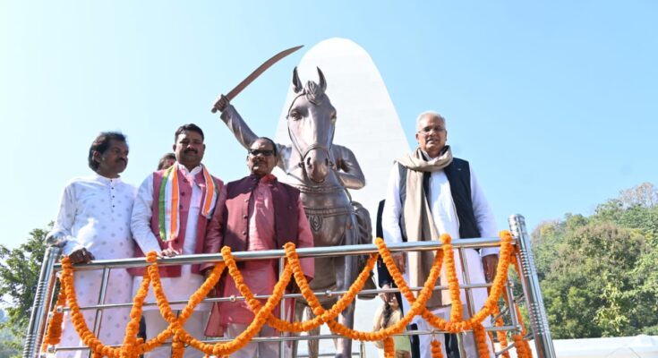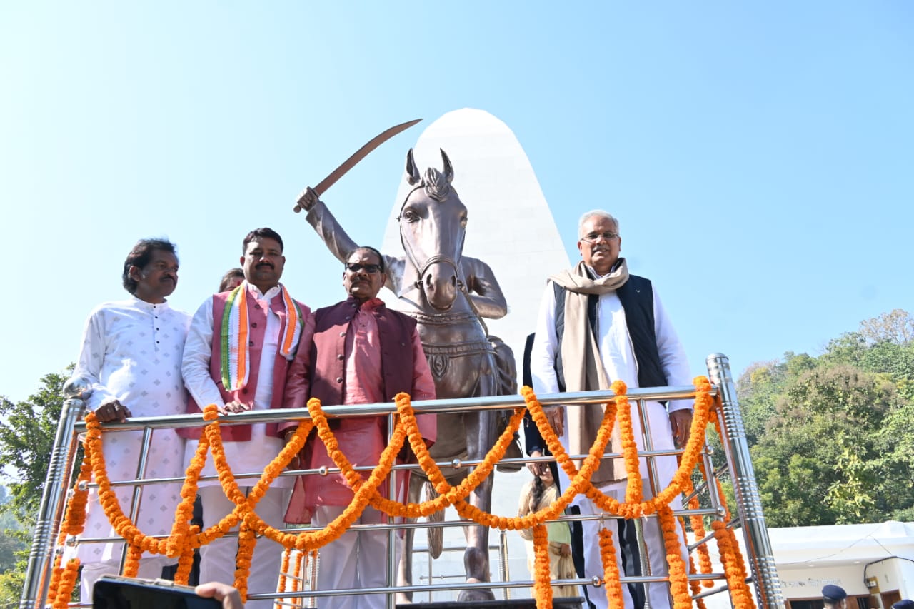 Chief Minister Mr. Baghel offered flowers at the tomb of Martyr Veer Narayan Singh and offered floral tributes to his life-size statue.