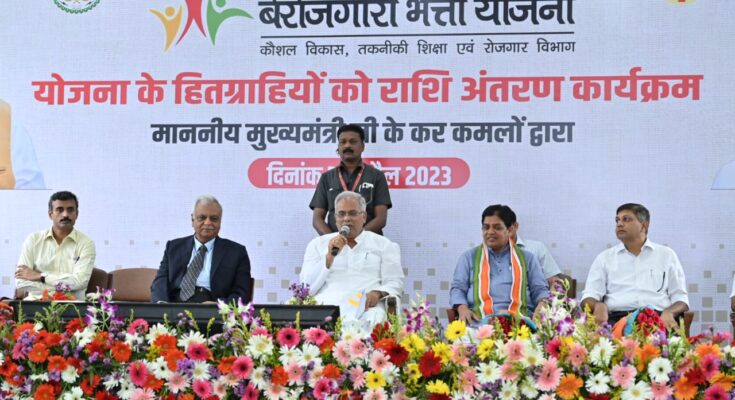 Chief Minister Mr. Bhupesh Baghel transferred an amount of Rs 16 crore to the accounts of 66 thousand 256 beneficiaries found eligible for unemployment allowance scheme in a program organized at the Chief Minister’s residence office on Sunday. 2500 rupees were transferred to the accounts of these beneficiaries, which will be given every month.