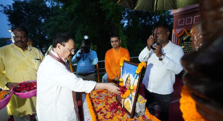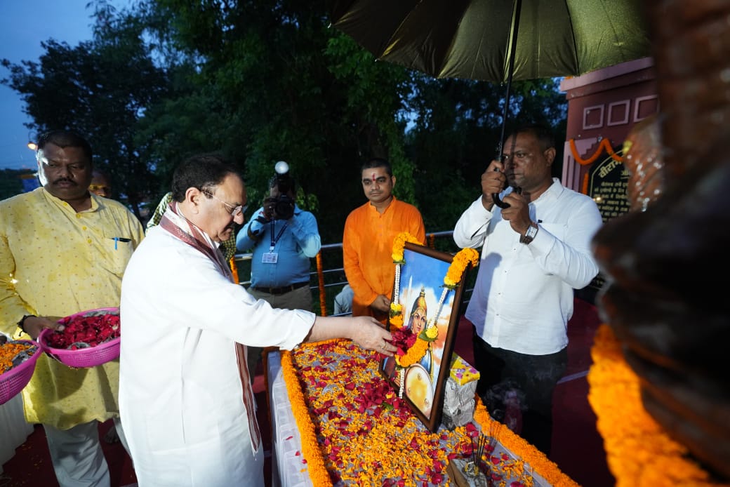 Bharatiya Janata Party’s National President and Union Health Minister Shri Jagat Prasad Nadda arrived in Chhattisgarh on his one-day visit today. Shri Nadda paid homage to Veerangana Rani Durgavati by garlanding her statue located at Canal Road, Telibandha in the capital Raipur. On this occasion, Chief Minister Shri Vishnu Dev Sai, Deputy Chief Ministers Shri Arun Saw and Shri Vijay Sharma, MLA Shri Kiran Singh Dev, Saja MLA Shri Ishwar Sahu were present.