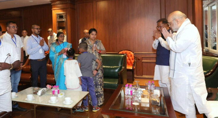 Union Home Minister Shri Amit Shah paid a courtesy visit to the family of Shri Akash Rao Giripunje, martyred in the IED blast in Sukma, in Nava Raipur. He met the bereaved family and expressed deep condolences and consoled them.