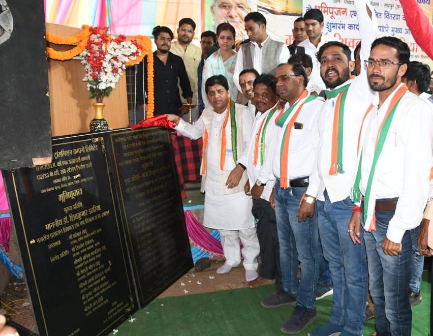 Urban Administration and Development and Labor Minister Dr. Shivkumar Dahriya performed Bhoomipujan of 132/33 KV sub-station to be constructed at a cost of Rs.30 crore 12 lakh in village Gullu of Arang development block of Raipur district here today. Speaking on the occasion, he said that this sub-station is important for the area. On its completion, lakhs of domestic and agricultural consumers of about 200 villages of the surrounding area including Gullu will be benefited. Once the power sub-station is built, further industrial development will get a boost in Arang and Mandir Hasaud. Dr. Dahria said that under the leadership of Chief Minister Mr. Bhupesh Baghel, people-friendly works are being done fast in Chhattisgarh. He said that power companies are continuously supplying electricity to the consumers of the state. Work is also being done at a fast pace to improve the electrical infrastructure. Dr. Dahria asked the officials of the Energy Department to complete the construction of the new sub-station soon.