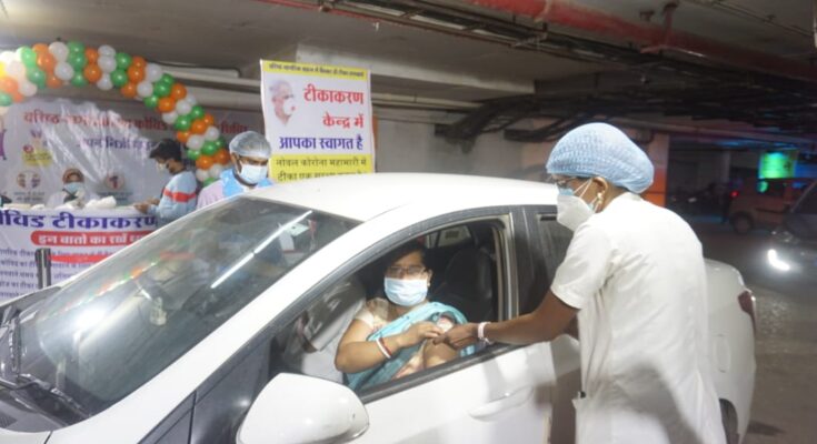 Raipur: Vaccine sitting in the car for the elderly: Drive in vaccination facility for senior citizens started in Durg district