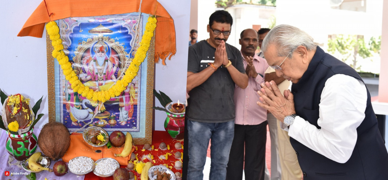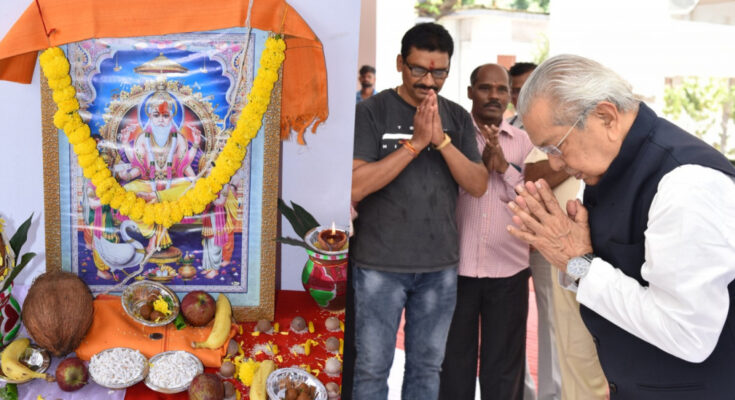 Governor Shri Vishwabhushan Harichandan today offered prayers to Lord Vishwakarma at the Raj Bhavan Secretariat and congratulated the people of the state on Vishwakarma Jayanti. Officers and employees of Raj Bhavan Secretariat were present on this occasion.