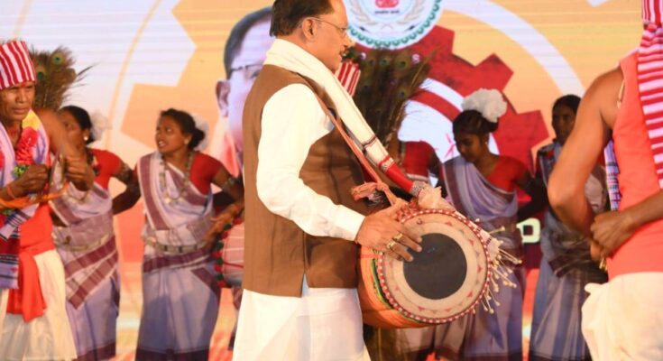 Who would not be attracted by the beats of Maander, attractive costumes and the rhythm of tribal folk dancers? Chief Minister Shri Vishnu Dev Sai also could not control himself and danced by joining Sapatnik on the request of Karma parties in his home village Bagiya. Seeing the Chief Minister Shri Sai dancing like a traditional folk artist, people were feeling happy that he has the same respect and respect for the tribal culture.