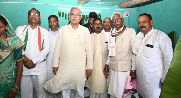 The Chief Minister Mr. Bhupesh Baghel tasted Koilar, Chench, and Munga Bhaji at farmer Balram’s home in village Sakola under the Pendra Development Block in the Gaurela Pendra Marwahi district. Enjoying the deliciousness of Arhar Dal, Rice, and Urad Badi along with tasty Bhaji during the Monsoon season wad indeed a delightful experience. Family member and the Sarpanch of Sakola, Mrs. Heeramati said that there is a Baadi just behind the house where vegetables like Munga, Chench Bhaji, Koilar Bhaji, Okra, and beans are grown. Heeramati gladdened the Chief Minister by feeding him her homegrown Chench, Koilar, and Munga Bhaji.