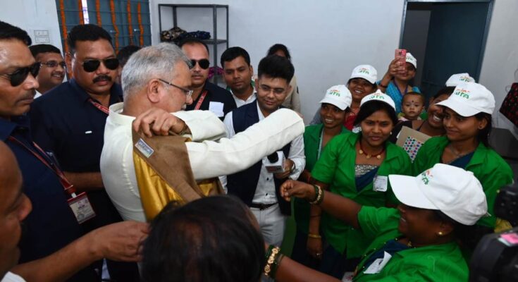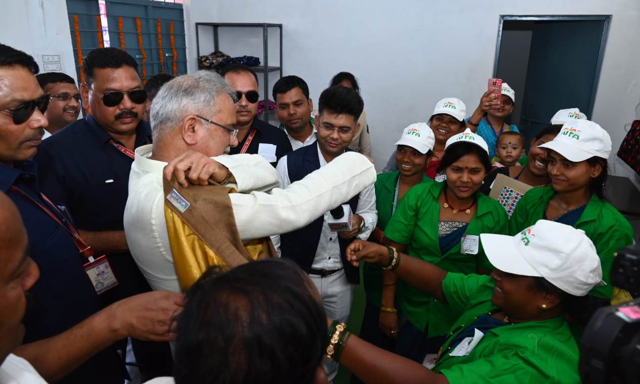 Chief Minister Mr. Bhupesh Baghel also saw the sewing unit being run by the sisters of the women’s group during the observation of RIPA at Beltukari in Masturi Vidhansabha. During this, the Didis of the group presented a jacket made by them to the Chief Minister. The sisters urged the Chief Minister to show him wearing this right here. When the Chief Minister wore the jacket, the sisters of the group expressed happiness and said that our hard work was successful. Praising the group, the Chief Minister said that you people have prepared very beautiful jackets. You guys are doing a great job. Seeing the products of the women of the group, the Chief Minister liked another jacket, which he bought.