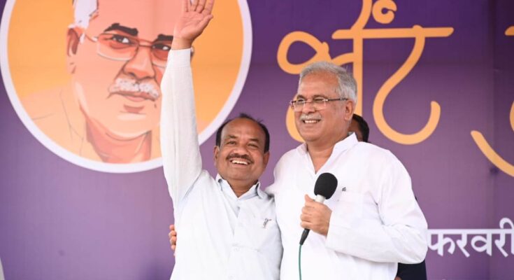 On Saturday, after 43 years, the two friends met in true sense. When two friends met after a long time, they hugged each other. Seeing this sight, hundreds of people present there expressed happiness by clapping. Happiness came on everyone’s face and both of them hugged each other. In fact, Chief Minister Mr. Bhupesh Baghel had reached Tamasivni of Abhanpur Vidhansabha, when he saw his friend Rooplal Sahu sitting in front of the public. After more than four decades, the Chief Minister recognized his friend and immediately called him to his side. Seeing his friend sitting in front of him after almost four decades, the Chief Minister called him on the dais and hugged him and became emotional. The Chief Minister said that today after 43 years I am meeting my friend, who was also my room partner. Today he is on the post of principal in Gariaband. Chief Minister Mr. Bhupesh Baghel said that he has known Tamasivani for a long time.