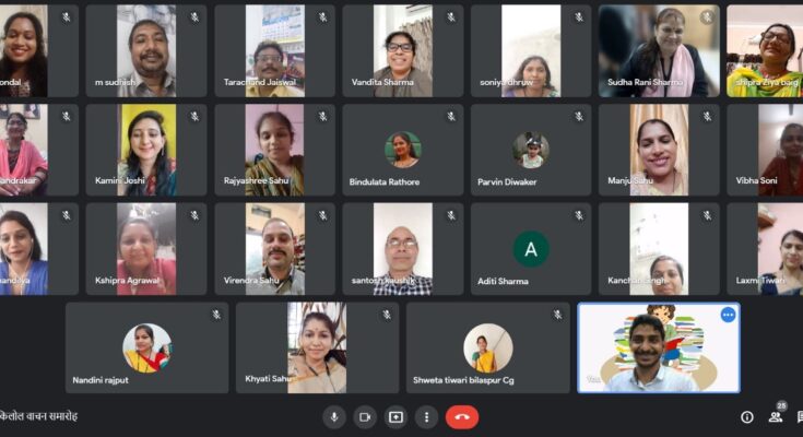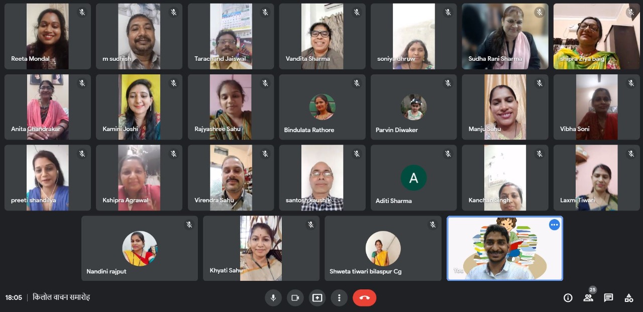 Organized by Wings-to-Fly Society, this webinar was conducted by Mrs. Rita Mandal with technical support from Mr. Puneet Mangal. Dr. M. Sudhish welcomed the participants in the program and informed about the objectives of the program. Introduction of the participating speakers of the program Preeti Shandilya, Shipra Baig, K. Sharda and Rajyashree Sahu. Laxmi Tiwari, Anita Chandrakar, Virendra Kumar Sahu, Kanchan Singh, Vandita Sharma, Shipra Agarwal, Nandini Rajput, Lokeshwari Kashyap, Santosh Kumar, Shweta Pushpendra Tiwari, Jagriti Sahu, Kamini Joshi, Vibha Soni, Manju Sahu from different districts of Chhattisgarh participated in the program. Sudharani Sharma, Parveen Diwakar, Sonia Dhruv, Bindu Lata Rathore and Anila Minj recited their compositions. At the end of the program, Mr. Tarachand Jaiswal thanked everyone and requested everyone to use Kilol Monthly Children’s Patrika in the classes.