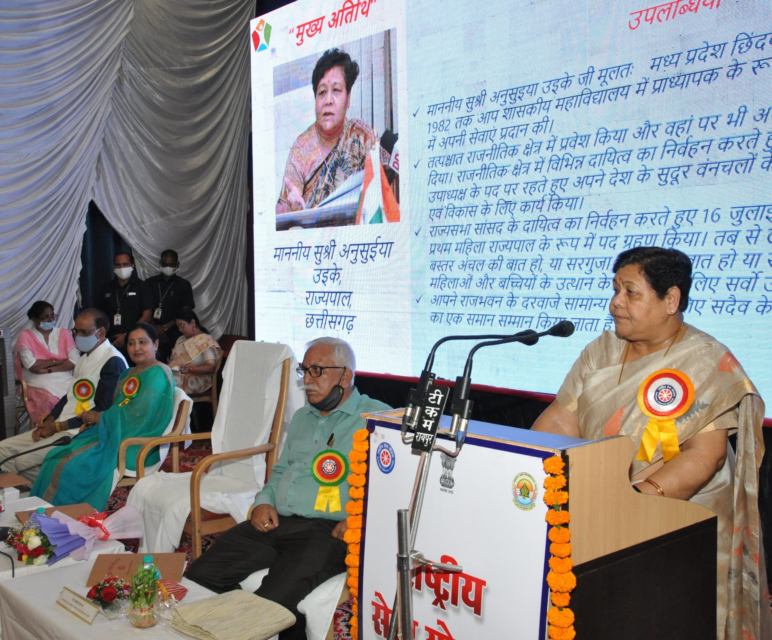 The function was presided over by the Vice Chancellor of Pandit Ravi Shankar Shukla University, Professor Kesarilal Verma and the special guest was State NSS officer Dr. Samarendra Singh. He also expressed his views. Chairman of Sakhi Foundation, Mrs. Neelam Singh presented the report and Dr. Neeta Bajpayee, Program Coordinator of National Service Scheme gave the welcome address. At the same time, former Rajya Sabha MP Shri Gopal Vyas and Shri Shivlal ji and other dignitaries were present.