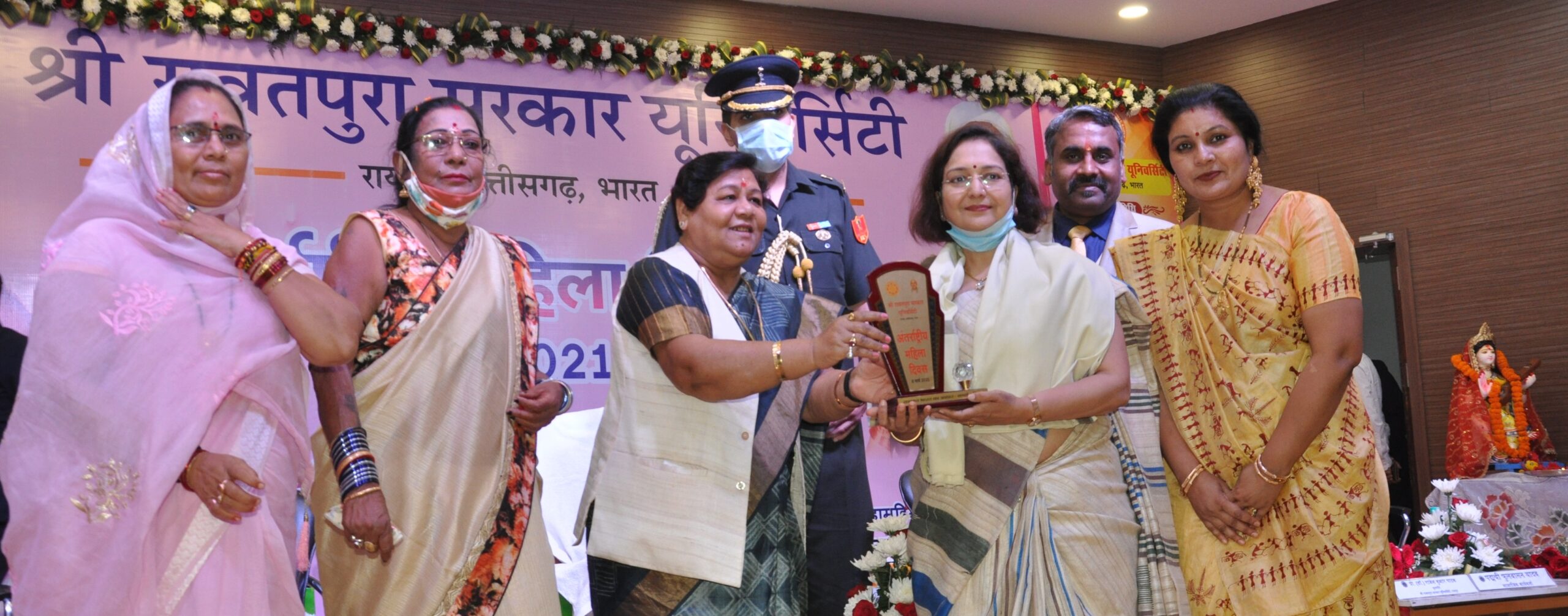 Raipur, 08 March 2021.  Governor Ms. Uike attended the honor ceremony organized by Mr. Rawatpura Sarkar University here today as Chief Guest. She honored women and women in various fields and gave them their best wishes.