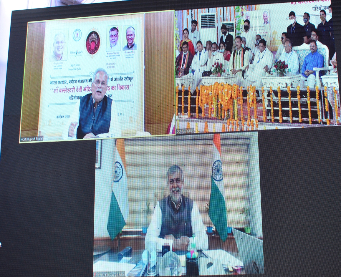 On this occasion, Union Minister of State for Tourism and Culture connected through virtual medium (Independent Charge ) Government of India, Shri Prahlada Singh Patel said that during the days of undivided Madhya Pradesh, I came on Dongargarh Navratri and my religious memories and reverence are associated with this pilgrimage site. This place is the main site of Sanatan , Buddhist and Jain beliefs. It shows the cultural diversity of India. There is a huge potential for tourism in this area. The Prasad Yojana will open up new possibilities for tourism development of Dongargarh. Union Tourism and Culture Minister of State ( Independent Charge ) said that infrastructure and all will work beautifying these tourist centers , will grow as much potential for the development.