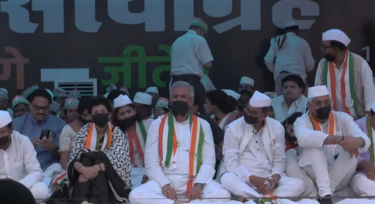 All the leaders of the state are involved in this Satyagraha in the historic Gandhi Maidan of Raipur. Chief Minister Bhupesh Baghel, state in-charge Kumari Selja, PCC President Mohan Markam, along with many big faces of power and organization are protesting by remaining silent together. Here the demonstration is going on in front of the statue of Mahatma Gandhi from 10 am which will continue till 5 pm. State in-charge Selja had reached Raipur by morning flight to participate in the demonstration. What is the whole matter