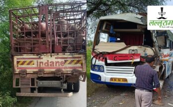 Bemetara. A major accident was averted this afternoon in Bemetara district of Chhattisgarh, where a bus full of passengers collided with a truck carrying gas cylinders near village Adar. There was …