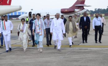 Raipur: Chief Minister Mr. Bhupesh Baghel and special guest Mrs. Priyanka Gandhi reached Danteshwari Airport to attend ‘Bharose Ka Sammelan’ in Jagdalpur.