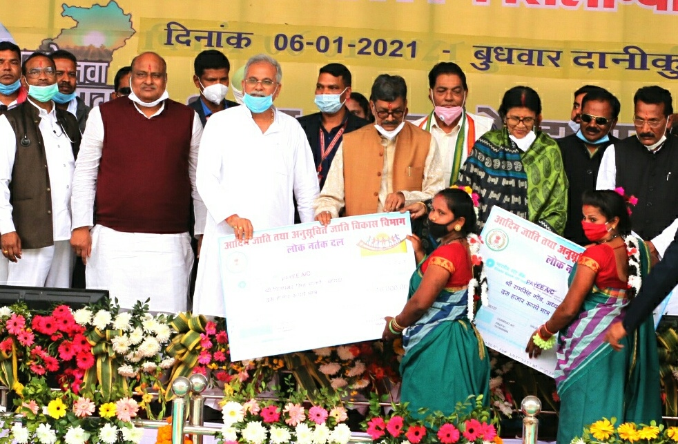 Raipur, 6 January 2021. Chief Minister  Bhupesh Baghel today inaugurated and laid foundation stones for 39 development works costing Rs 8 crore 54 lakh during the foundation stone laying ceremony …