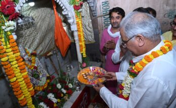 Raipur: Chief Minister Mr. Bhupesh Baghel offered prayers after reaching Siddha Baba Balaknath Ji Temple located in Khursipara.