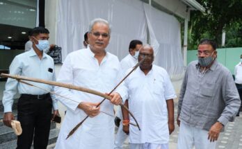 Raipur: Samri MLA presented arrow-bow sent by Pahari Korwa tribals as a birthday gift to the Chief Minister. Read More