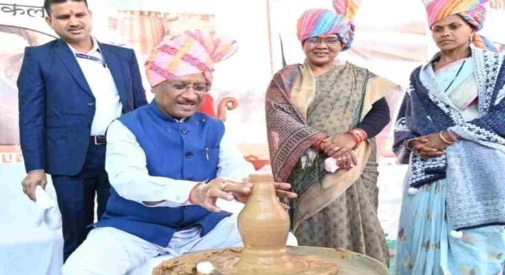 Raipur. On the occasion of the inauguration of Tatapani Mahotsav today, Chief Minister Vishnu Dev Sai observed the stalls set up by various government departments and closely observed the local art, culture and the impact of government schemes. Chief Minister Sai met Shivmangal, a resident of Ara village of Rajpur, who has bShivmangal said that getting the electric wheel has made it easier for him to earn a livelihood. His family is earning an annual income of Rs 2-3 lakh by making traditional earthen pots. Shivmangal’s art was displayed at the festival, where a live exhibition of pots, kulhars and other earthen pots was held. The Chief Minister praised him for promoting traditional art. During this, the Chief Minister also operated the charkha, a symbol of Gandhiji’s self-reliance, on the request of weaver Saudan Singh. The Chief Minister said that the state government is making every effort to promote self-reliance and self-sufficiency.een working as a potter for 25 years.Shivmangal said that getting the electric wheel has made it easier for him to earn a livelihood. His family is earning an annual income of Rs 2-3 lakh by making traditional earthen pots. Shivmangal’s art was displayed at the festival, where a live exhibition of pots, kulhars and other earthen pots was held. The Chief Minister praised him for promoting traditional art. During this, the Chief Minister also operated the charkha, a symbol of Gandhiji’s self-reliance, on the request of weaver Saudan Singh. The Chief Minister said that the state government is making every effort to promote self-reliance and self-sufficiency