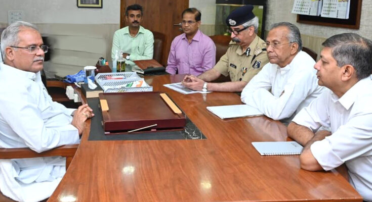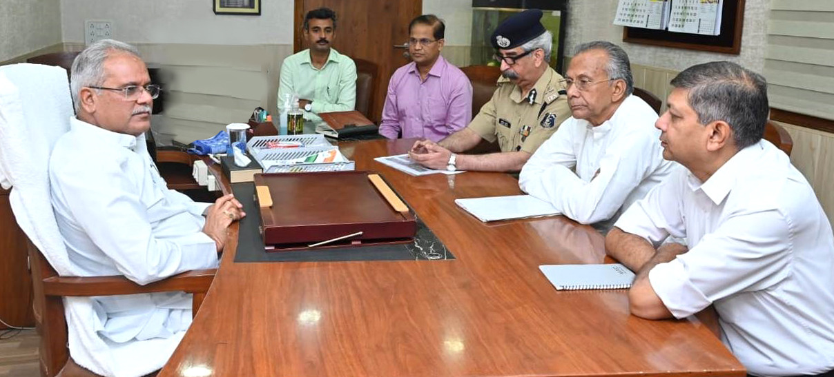 Home Minister Mr. Tamradhwaj Sahu, Chief Secretary Mr. Amitabh Jain, Director General of Police Mr. Ashok Juneja, Secretary to Chief Minister Mr. Ankit Anand, Inspector General of Police Intelligence Mr. Ajay Yadav were present in this emergency meeting.