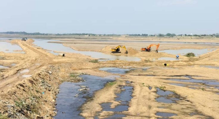 , Arang. Illegal excavation and transportation of sand is going on indiscriminately in about half a dozen villages on the banks of Mahanadi in Arang area. The sand mafia is fearlessly endangering the existence of the river by extracting unlimited sand from the Mahanadi, which is called the ‘lifeline of Chhattisgarh’ day and night