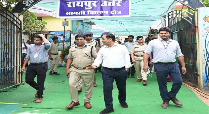 Webcasting is being done by the Election Commission through CCTV cameras of a large number of polling stations. To conduct the elections peacefully, monitoring is being done with the help of CCTV cameras and civil team. On Monday, officials including Collector Gaurav Singh and SSP Santosh Singh took stock of the arrangements of Strong Room Sejbahar and BTI and after visiting all the booths, they gave necessary instructions.