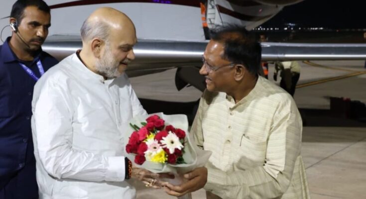 Raipur. After the first phase of elections in Bastar, political parties are now busy preparing for the second phase of voting on 26 April and the third phase on 7 May for the remaining 10 seats in the state. Meanwhile, Union Home Minister Amit Shah has reached Raipur today for Chhattisgarh tour. Some time ago his plane landed at Raipur airport. During this, CM Sai and BJP state president Kiran Singhdev welcomed him with a bouquet. Shah has left for BJP office Kushabhau Thackeray complex. Where he will hold a meeting with party officials.