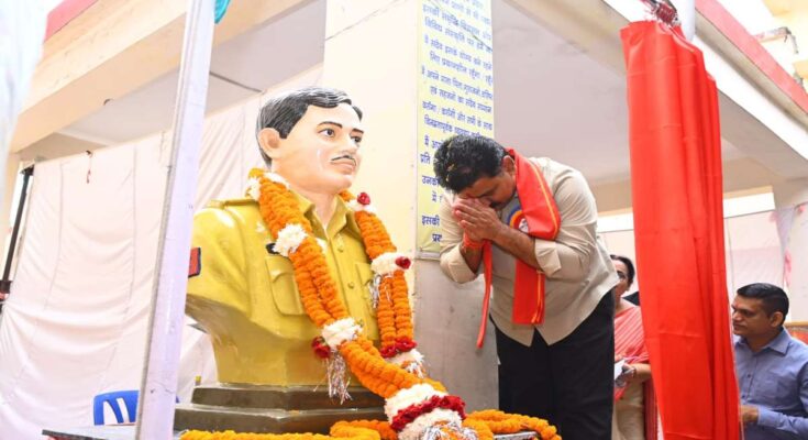 Raipur. Deputy Chief Minister Vijay Sharma today unveiled the statue of martyr Sanjay Yadav at Shaheed Sanjay Yadav Government Higher Secondary School in Sanjay Nagar, Tikrapara, Raipur. During this, Deputy Chief Minister Sharma also said that the government of Chief Minister Vishnudev Sai will build a memorial for all those 1200 martyrs who have sacrificed their lives to protect democracy and society. T